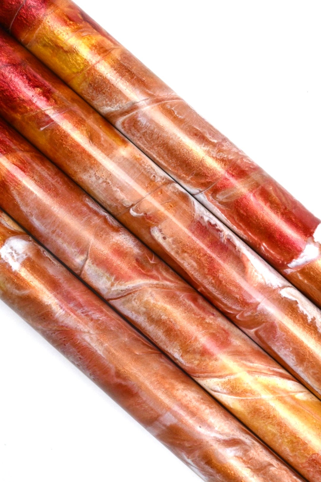 Premium, one of a kind custom bespoke pen blanks. High pressure cast and cured with Alumilite Resin®. 'Angels Landing' is cast with high quality MadMicas® pigments, including several shades of copper, gold, red and opaque white, resulting in a stunning blank! Made in small batches. These are exclusive, top of the line blanks we offer to custom pen makers. Perfect for the high end fountain pen maker.