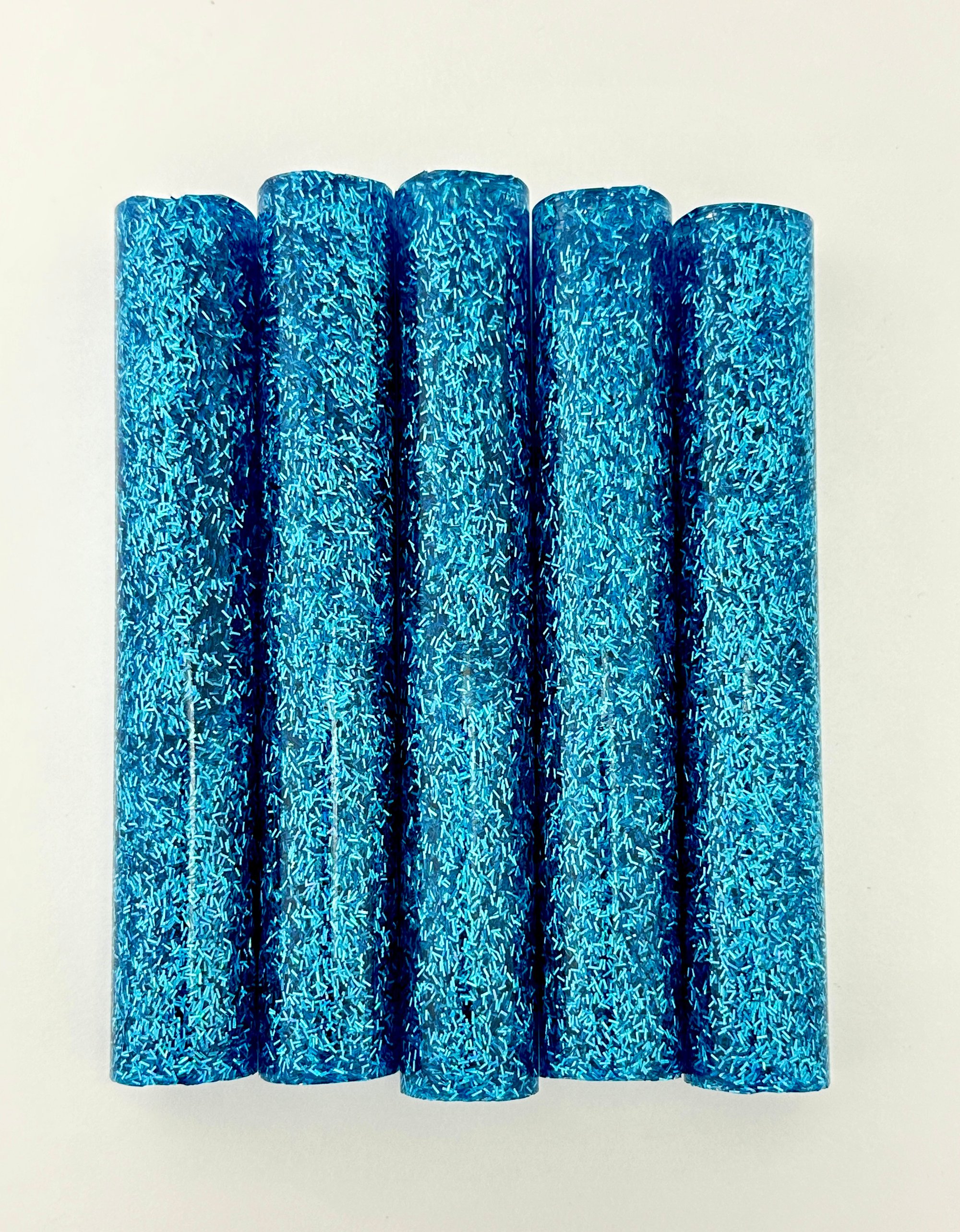Premium, one of a kind custom bespoke pen blanks. High pressure cast and cured with Alumilite Resin® and a unique blend of bright blue holographic glitter. Made in small batches, these are exclusive, top of the line blanks we offer to custom pen makers. Perfect for making Diamond Painting Pens or use for accents for custom fountain pens!