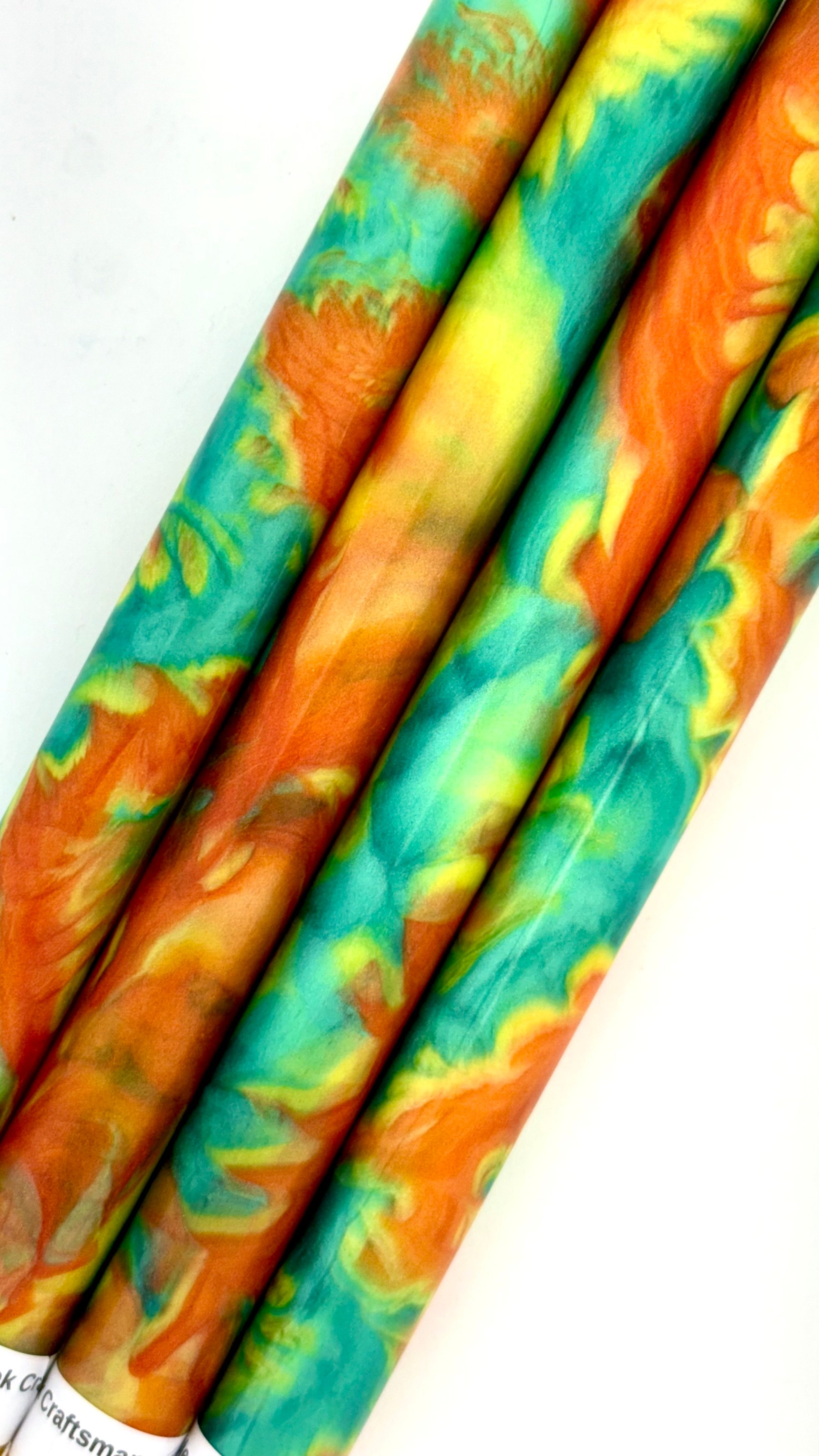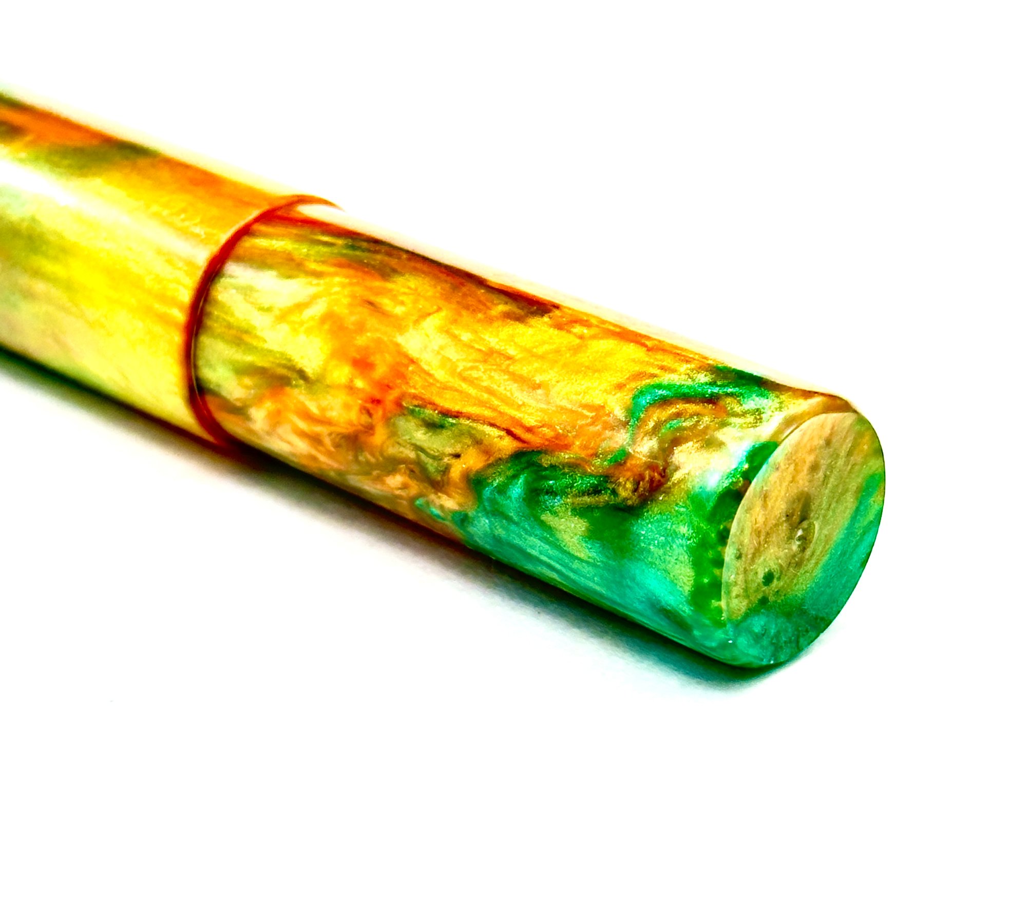 Premium, one of a kind custom bespoke pen blanks. High pressure cast and cured with Alumilite Resin®. 'Chernobyl' is cast using high quality Eye Candy® Pigments with shades of green, yellow and orange, resulting in a stunning blank! Cast in small batches and made for custom pen makers in mind, but also taking into consideration other hand-made craft Makers who require one of a kind, high end materials for their craft. This is it!
