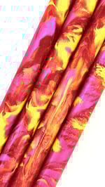 Premium, one of a kind custom bespoke pen blanks. High pressure cast and cured with Alumilite Resin®. 'Cherries on Banana's' is a great mix of high grade pigments and dyes, including shades of crimson red, pink, yellow and kings ransom glitter mixed in with complimentary translucent colors. Made in small batches, these are exclusive, top of the line blanks we offer with high end fountain pen makers in mind, but they're also great for any maker looking for unique material.