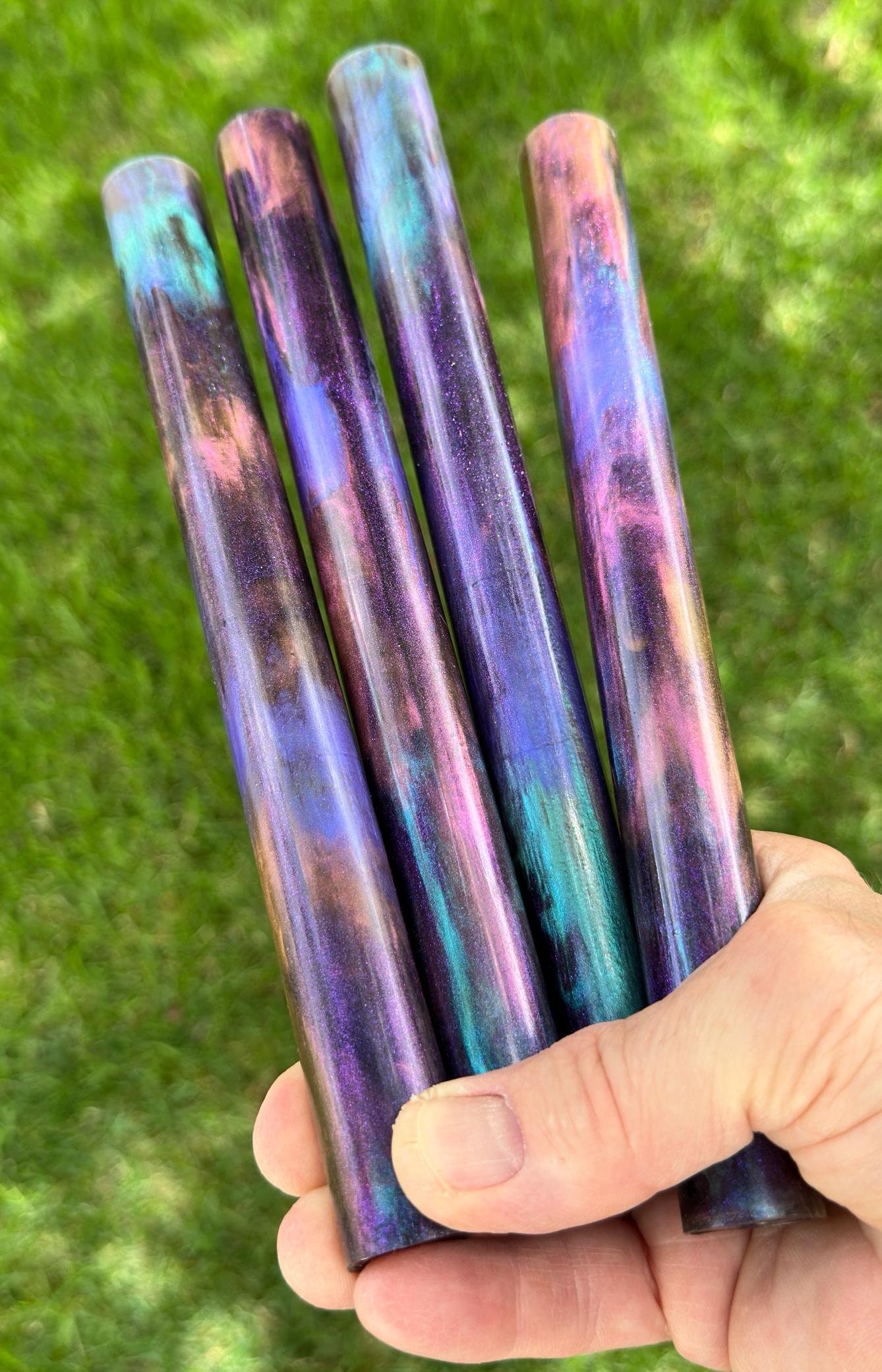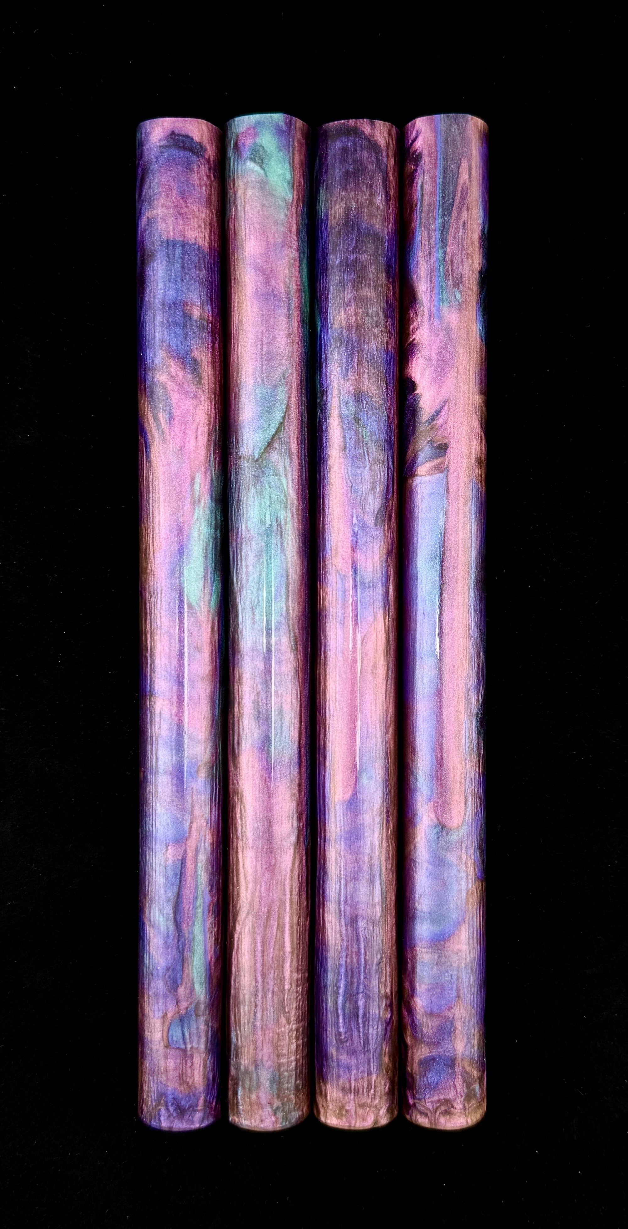 Premium, one of a kind custom bespoke pen blanks. High pressure cast and cured with Alumilite Resin®. 'Lagoon Nebula' is cast using high quality mica pigments with Chatoyance specific pigments that create a very unique color-shift experience. Colors will range from frosty pink to shifting teal and deep purple, all added to a twinkling translucent black resin resulting in a blank with depth and chatoyance that is eye popping! Inspired by the rich colors of the Lagoon Nebula as seen through the Webb Space Telescope. Pressure cast in small batches. These are exclusive, top of the line blanks we offer to custom makers. Perfect for the high end fountain pen maker, and advanced pen kit makers. Offered to other Makers of fine crafts as well.