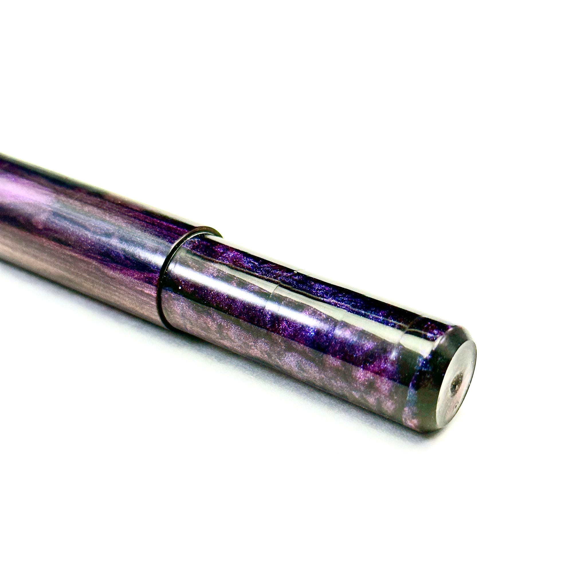 Premium, one of a kind custom bespoke pen blanks. High pressure cast and cured with Alumilite Resin®. 'Dark Star' is cast using high quality Eye Candy Pigments, including multiple color-shift pigments that transition between deep purples to greens and golds. The result is a stunning blank! The blank is a salute to the high flying reconnaissance aircraft in the aviation arsenal of the US Air Force, specifically the SR-71 BlackBird, U2 and the elusive and top secret Lockheed Skunk Works 'Dark Star'. Made in small batches. Perfect for creating high end custom writing instruments, but also for serious Custom Crafter's looking for unique material.