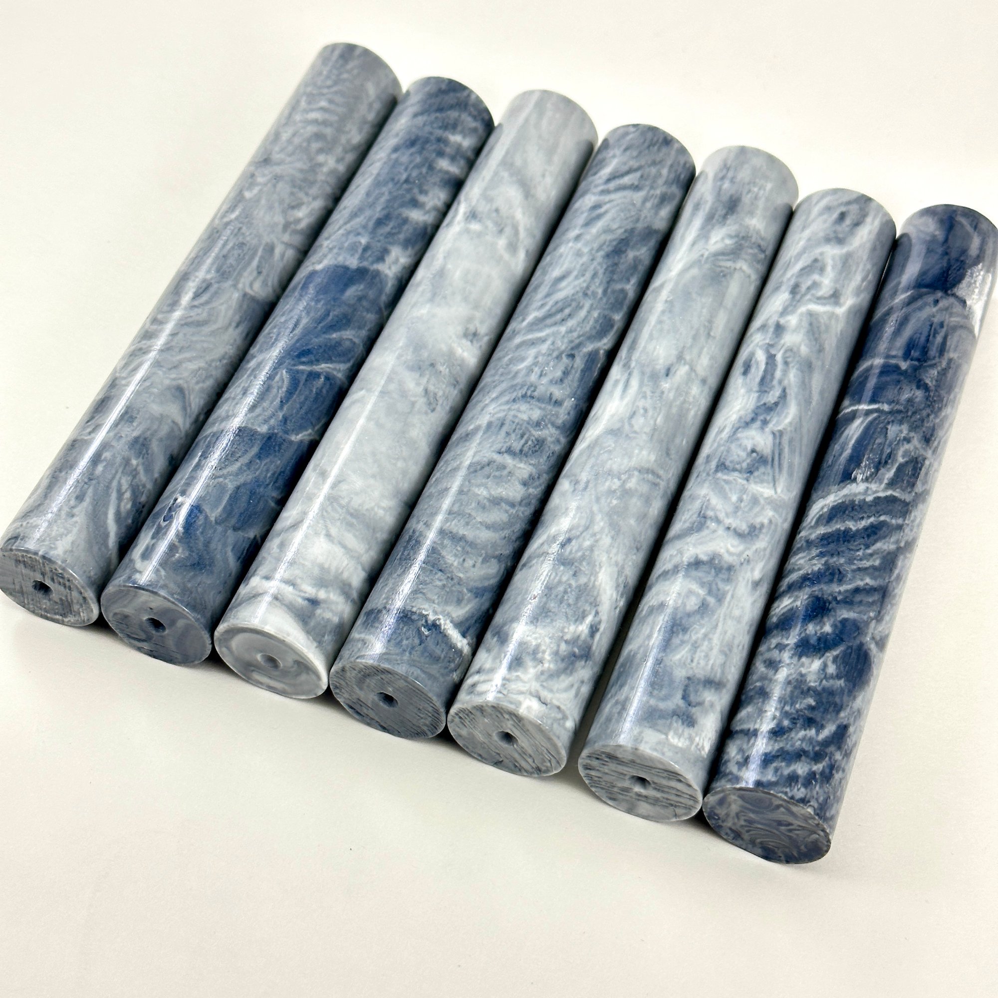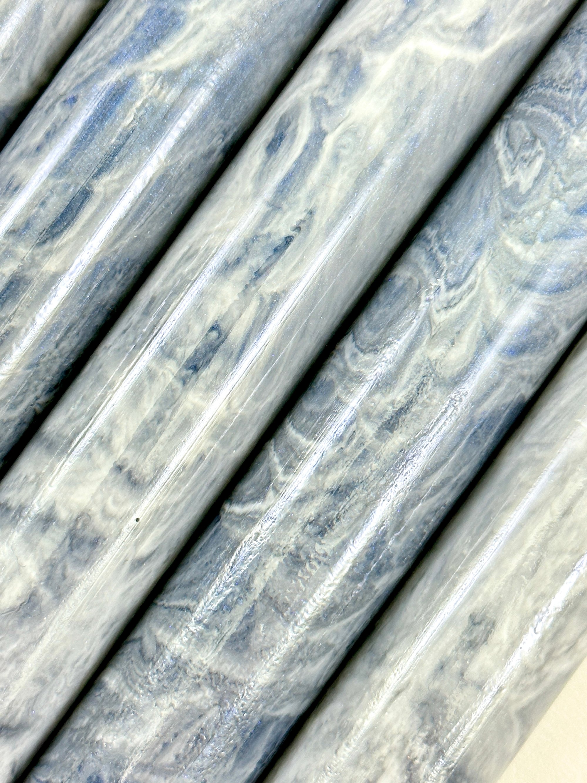 Premium, one of a kind custom bespoke pen blanks. High pressure cast and cured with Alumilite Resin®. 'Gun Metal' is cast with high quality Eye Candy Pigments®, including several shades of opaque white, teal and a healthy amount of gun metal grey, mixed with clear resin, resulting in a stunning blank! Made in small batches. These are exclusive, top of the line blanks we offer to custom pen makers. Perfect for kit pens and diamond painting pens!