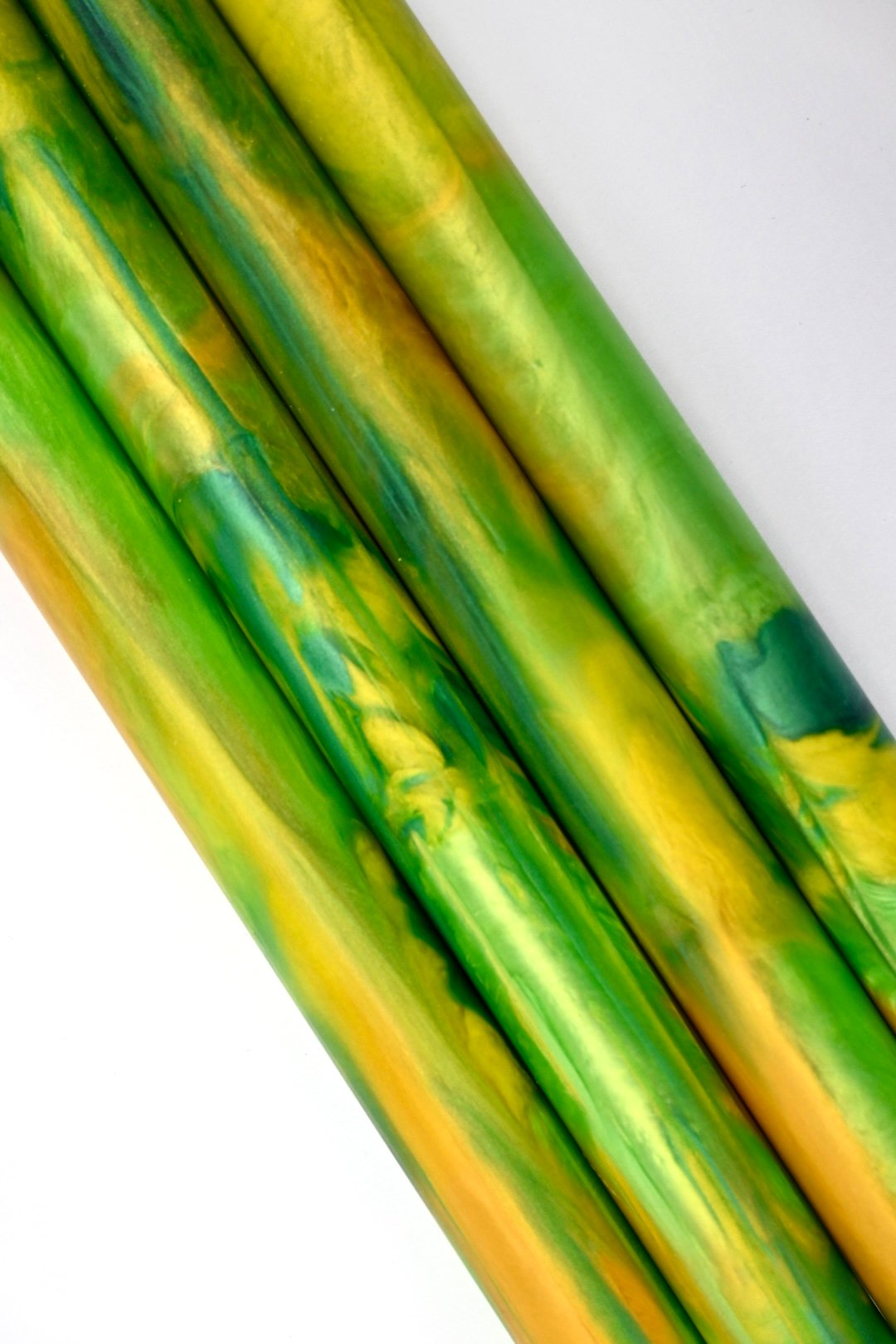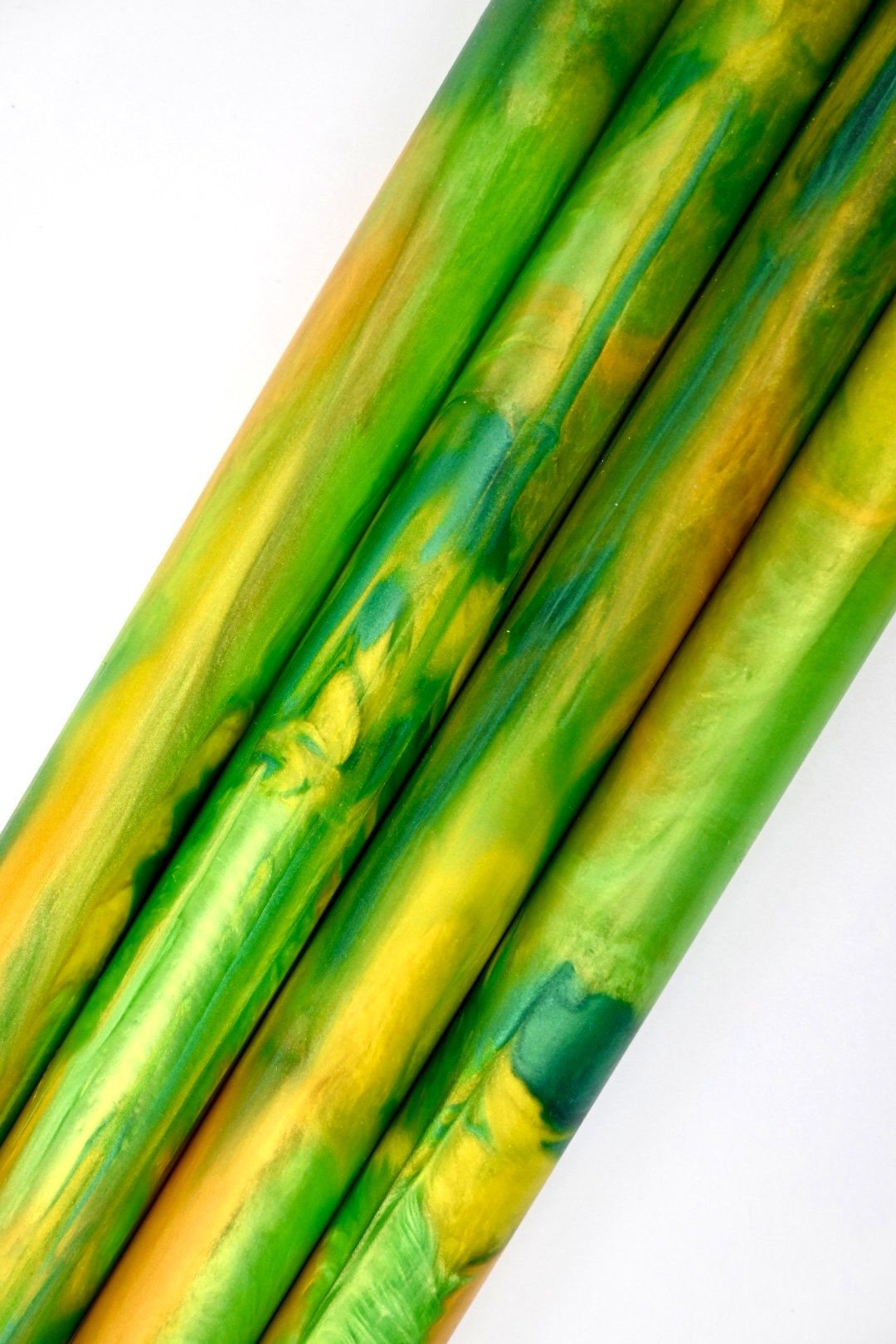 Premium, one of a kind custom bespoke pen blanks. High pressure cast and cured with Alumilite Resin® and unique blends of Eye Candy® mica pigments. 'Kansas Sunflower Field' is reminiscent of the colors found in the endless sunflower fields of Kansas. Made in small batches. These are exclusive, top of the line blanks we offer to custom pen makers. Perfect for the high end fountain pen maker, but would also look fantastic on a kit pen.