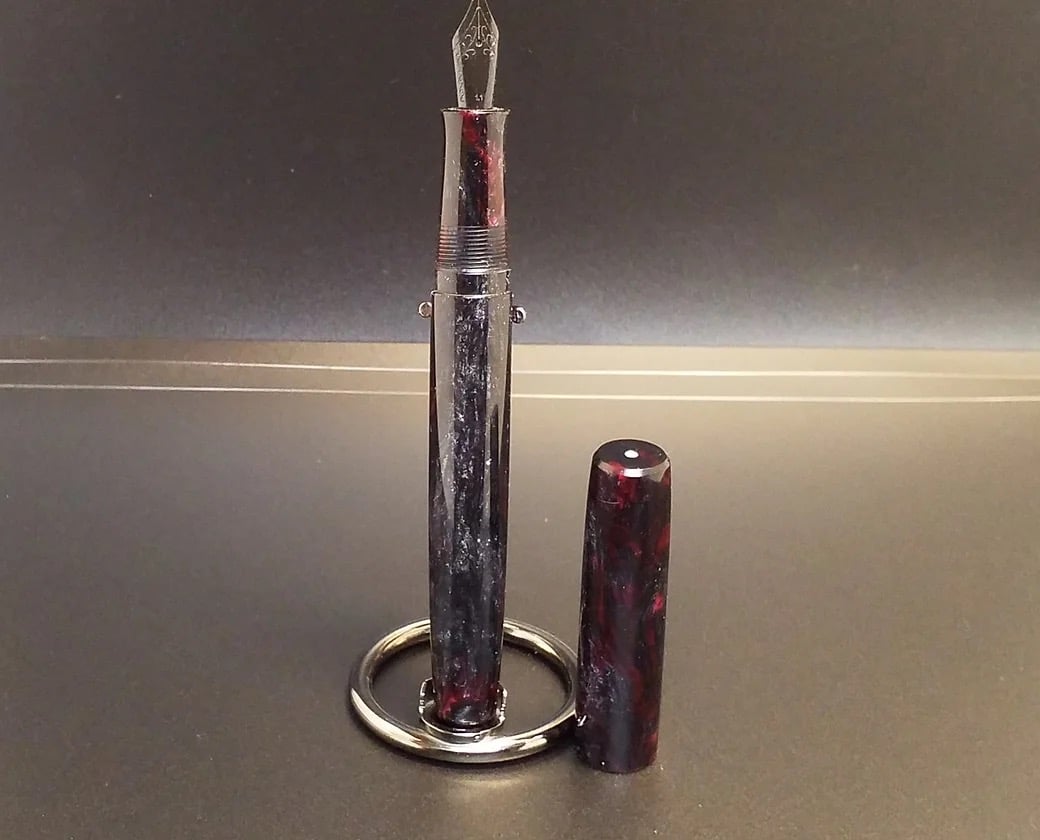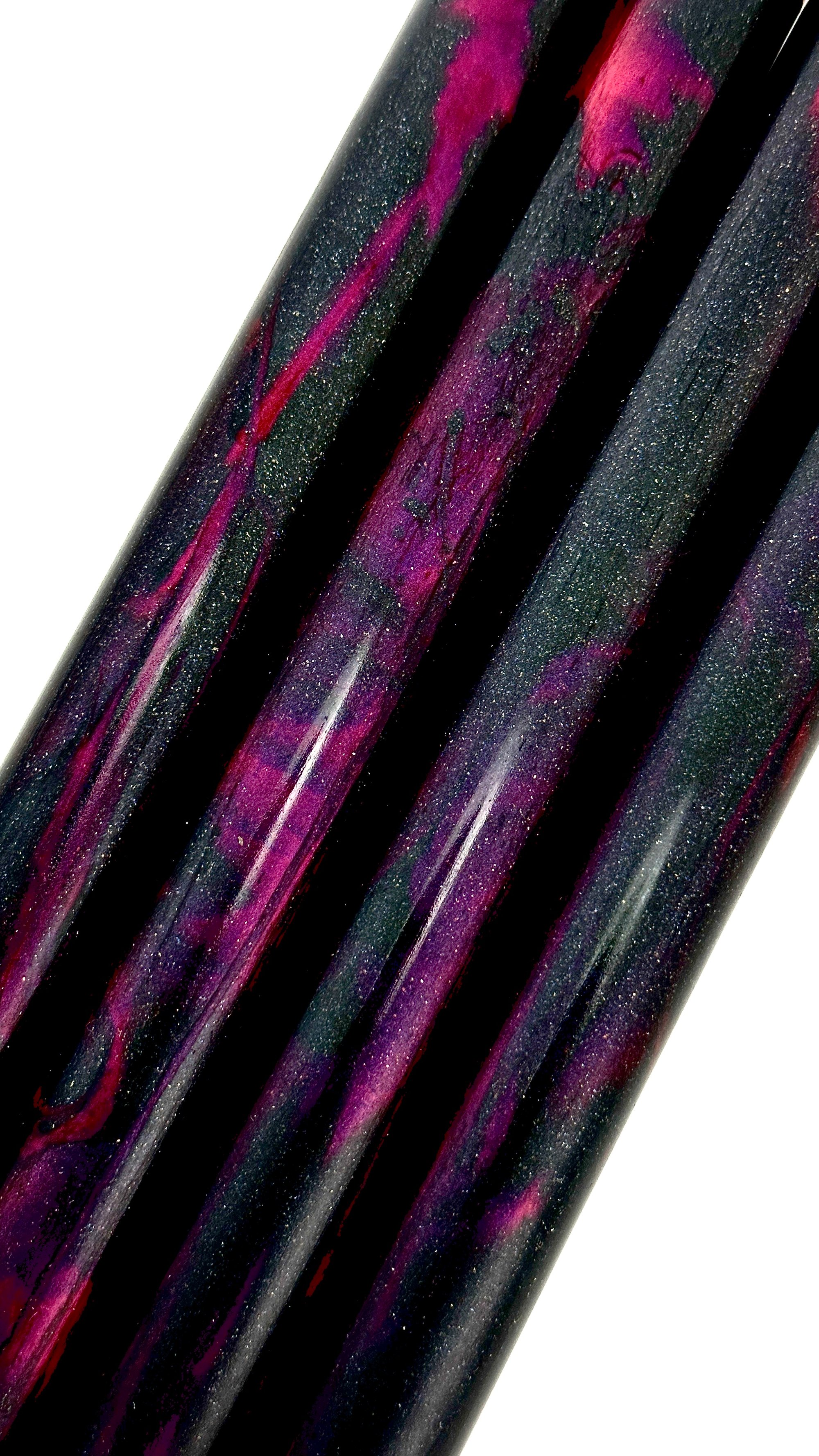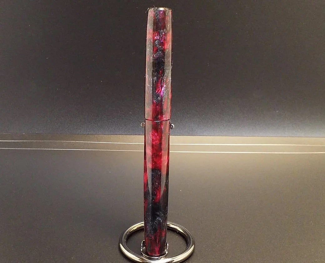 Custom Bespoke Makers Blank! 'Black Heart' is high pressure cast using Alumilite resin, translucent dyes along with Black Galaxy pigment and proprietary red color-shift micas. It will definitely hold some beautiful surprises! The color inspiration for this Makers blank originates from the 'Flaming Star Nebula'. Made for high end custom fountain pen makers in mind, but also taking into consideration other custom Makers who require one of a kind, high end materials for their craft. This is it!