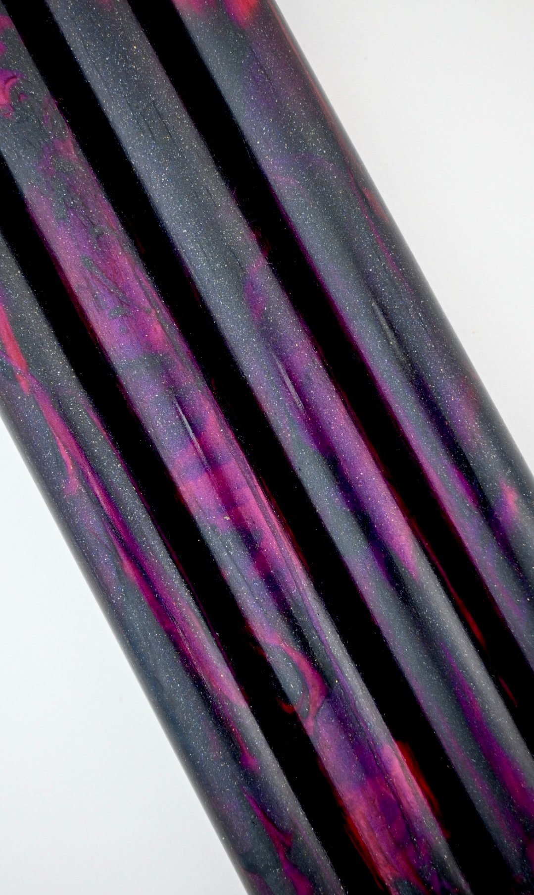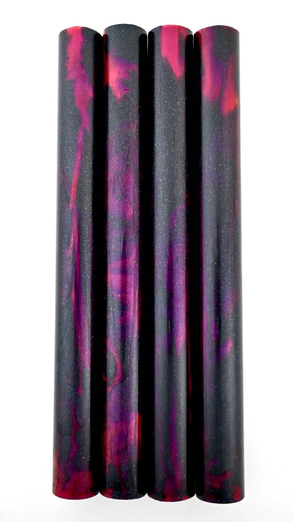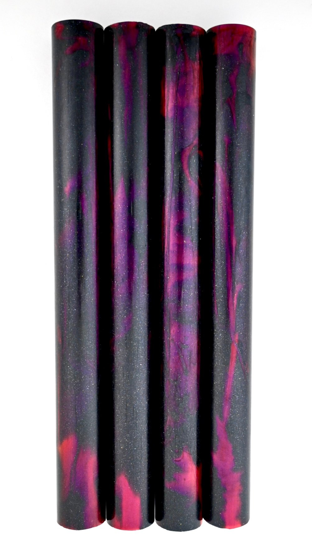 Custom Bespoke Makers Blank! 'Black Heart' is high pressure cast using Alumilite resin, translucent dyes along with Black Galaxy pigment and proprietary red color-shift micas. It will definitely hold some beautiful surprises! The color inspiration for this Makers blank originates from the 'Flaming Star Nebula'. Made for high end custom fountain pen makers in mind, but also taking into consideration other custom Makers who require one of a kind, high end materials for their craft. This is it!