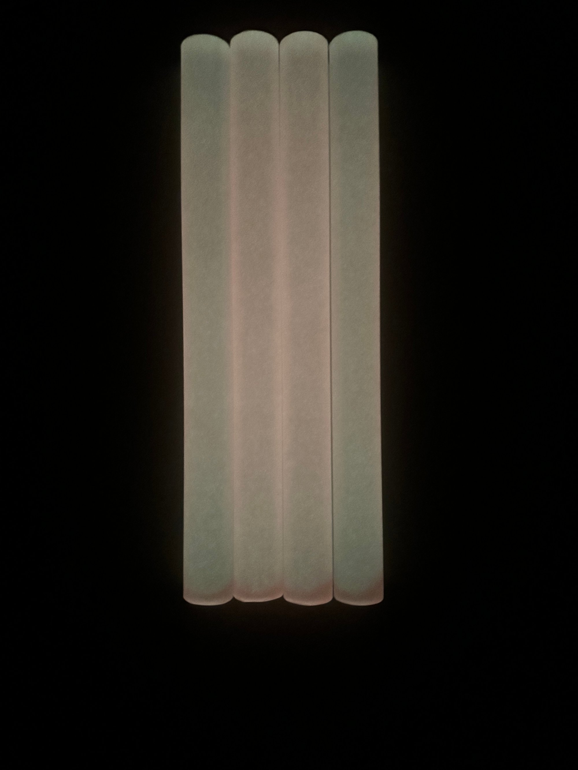 ** When blank is activated/charged with a UV light, it will glow a somewhat pixelated light pink **