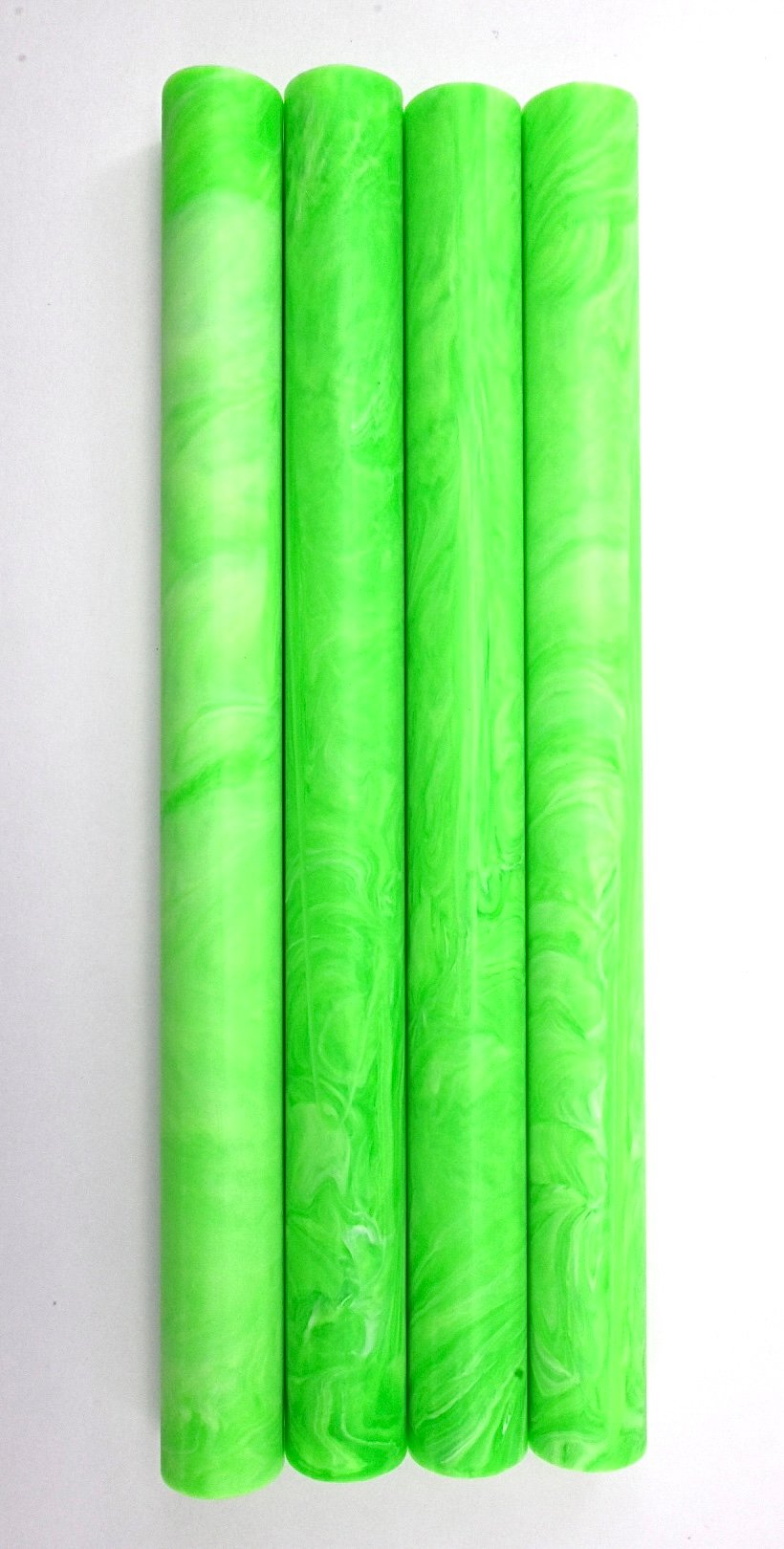 Premium, one of a kind custom bespoke pen blanks. High pressure cast and cured with Alumilite Resin® and unique blends of Mad Micas® neon pigments. 'Radioactive' is a great combination of neon green and opaque white swirls. Made in small batches, these are exclusive, top of the line blanks we offer to custom pen makers. Perfect for the high end fountain pen maker, but would also look great on a kit pen.